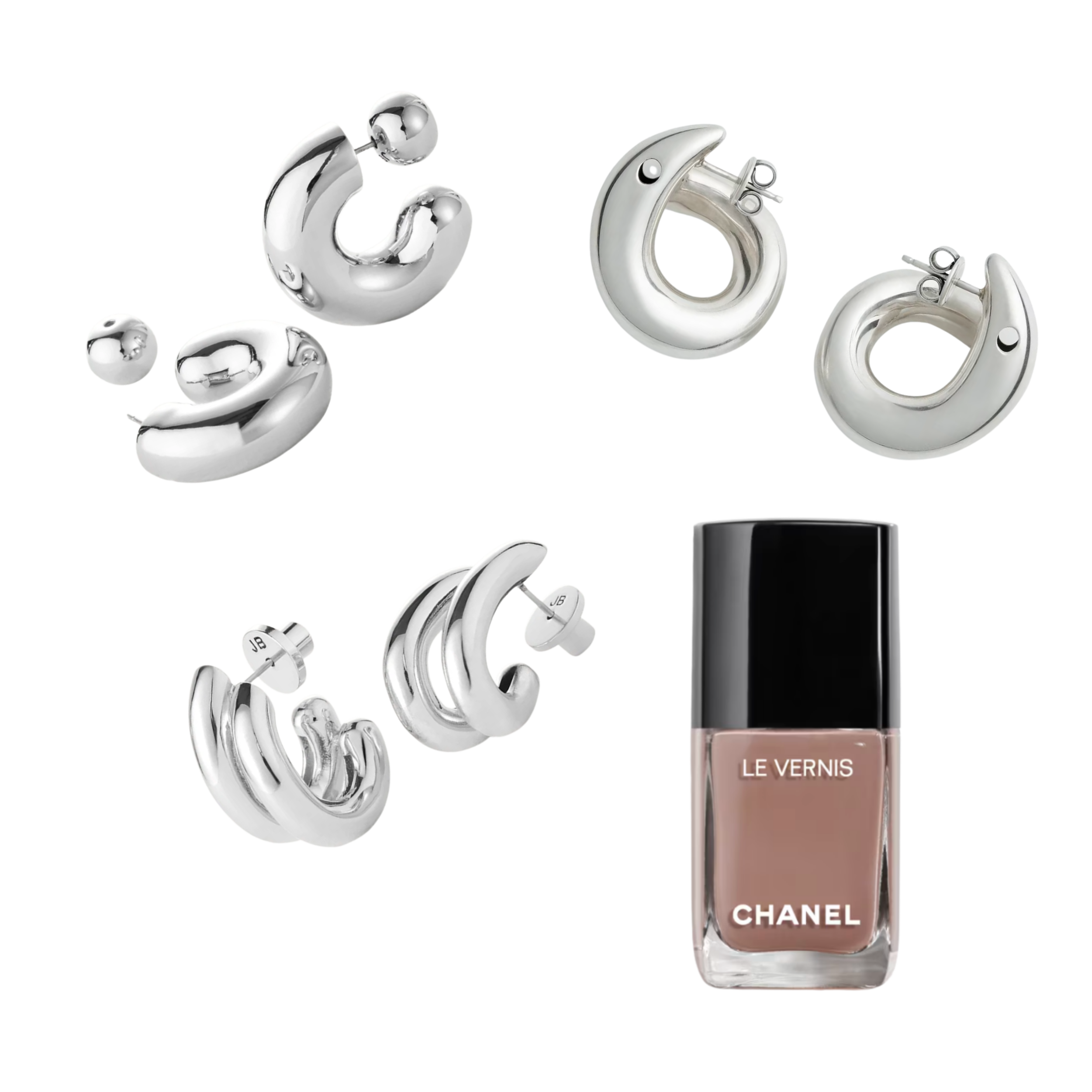 Add silver-tone jewelry and muted tones for nails. The clean metal and restrained polish keep the look sharp and modern. This is currently the most popular styling trend.