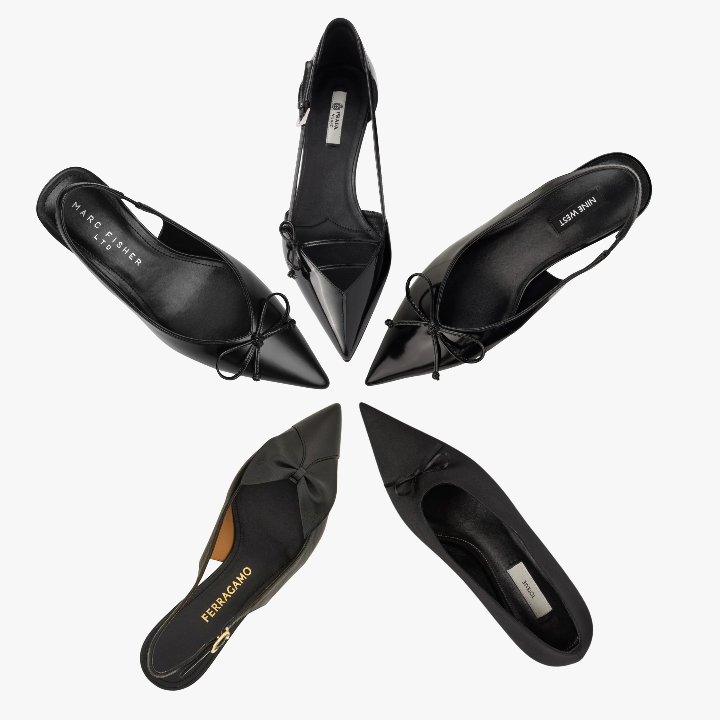 Clockwise from top: Prada $1,290, Nine West $89.99, Toteme $780, Ferragamo $995, Marc Fisher $119.99.